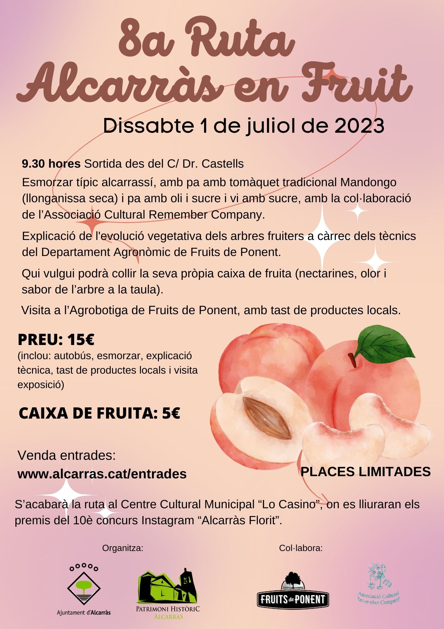 S’acabarà la ruta al Centre Cultural Municipal “Lo Casino”, on es lliuraran els premis del 10è concurs Instagram “Alcarràs Florit”.