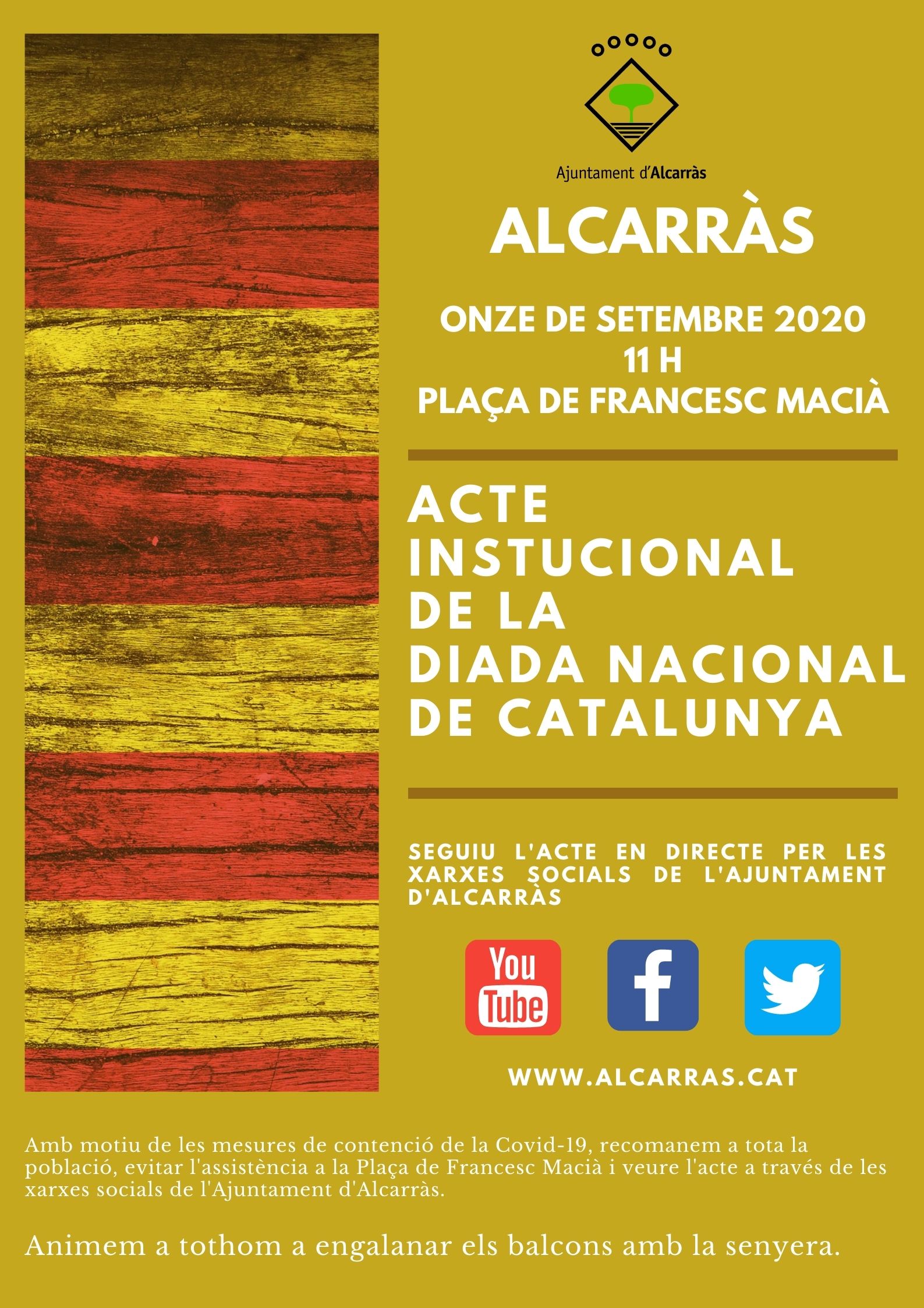 Degut a les mesures de seguretat no hi haurà públic i l'acte es retransmetrà en streaming |