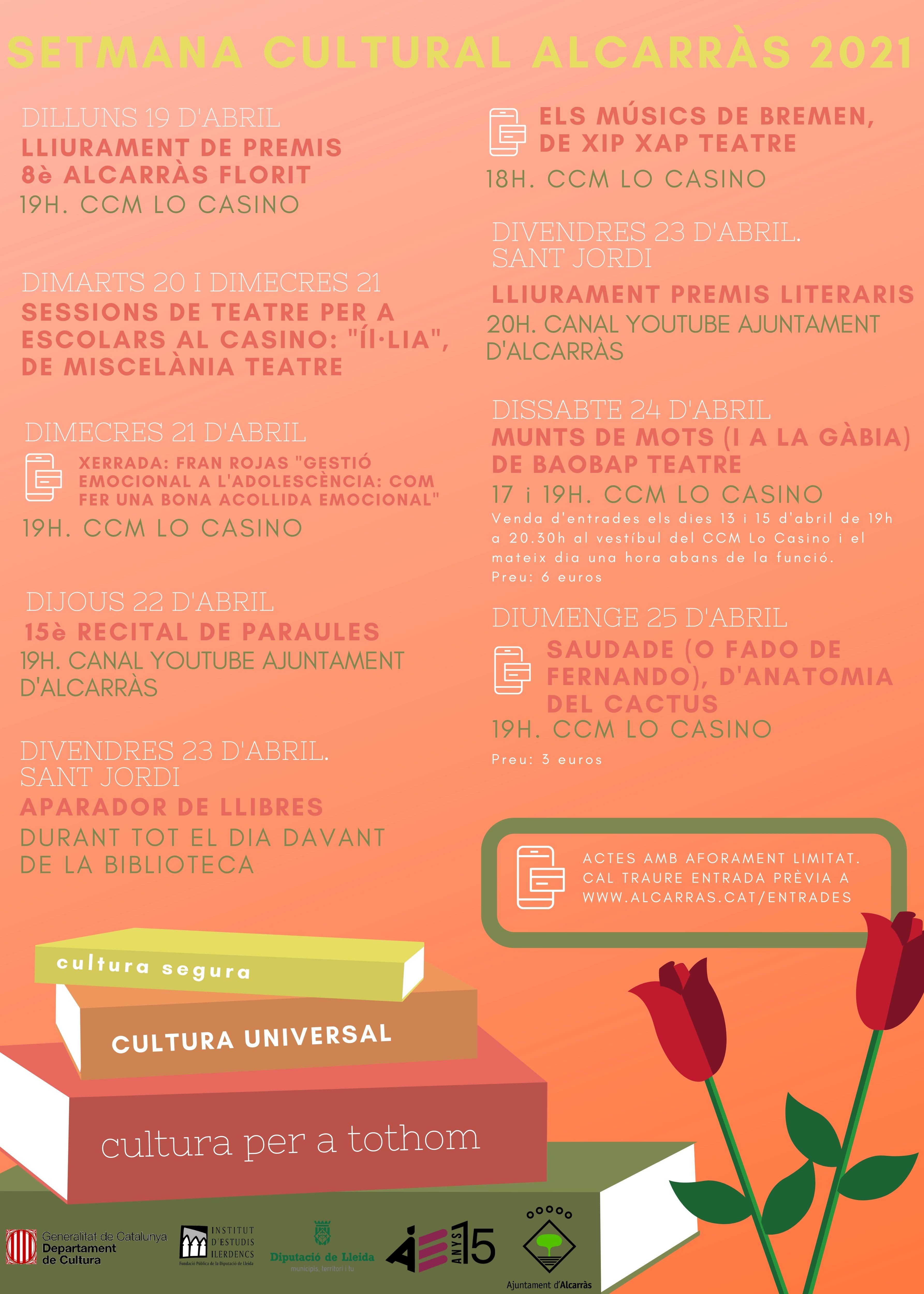 Per tal de garantir les mesures Covid a totes les activitats s’ha de treure invitació a www.alcarras.cat/entrades