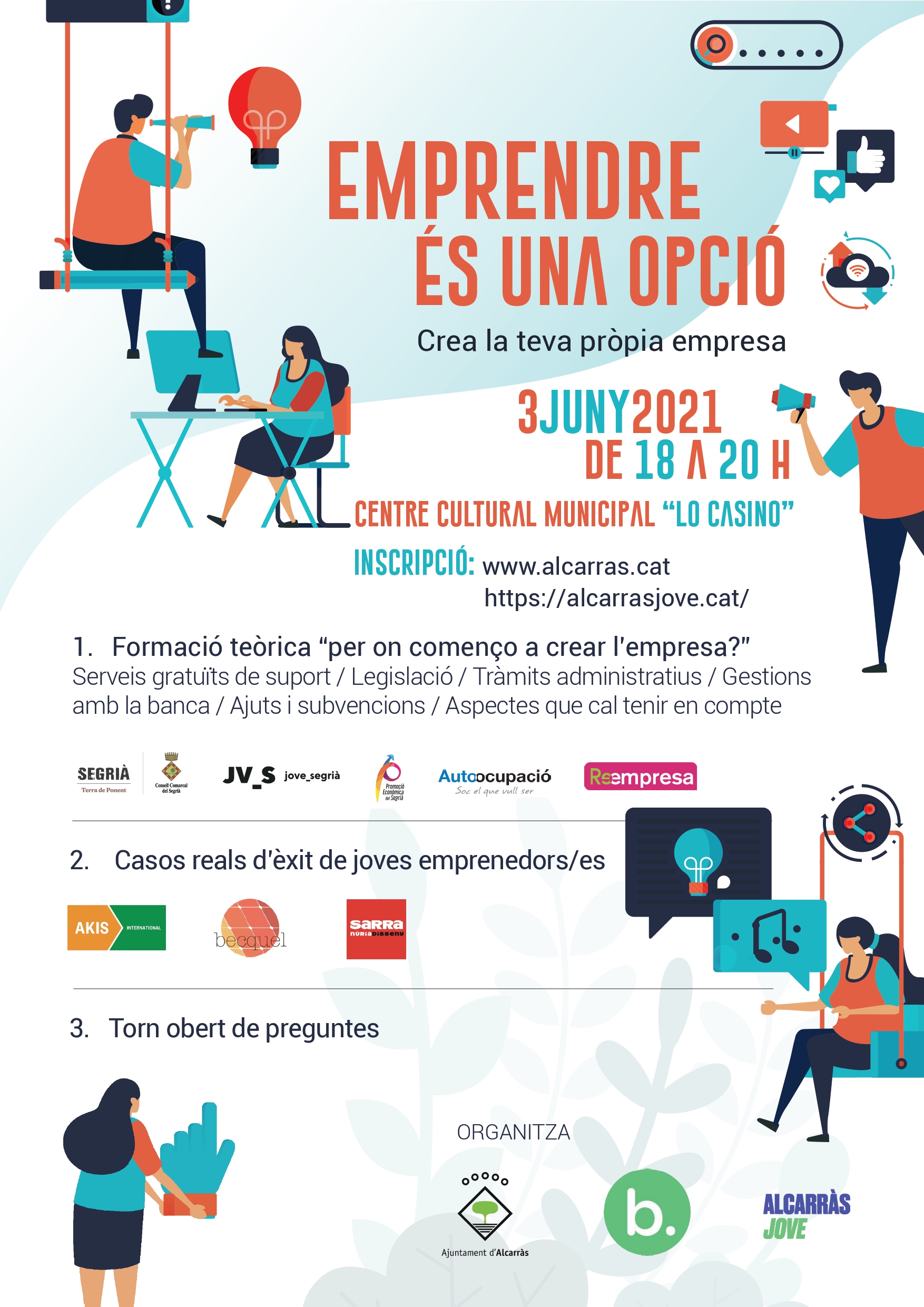 Coneixereu els passos a seguir per a crear una empresa, elements a tenir en compte, ajuts i subvencions, gestions amb la banca i molta més informació de mans dels principals referents en matèria d'ocupació juvenil del nostre territori.