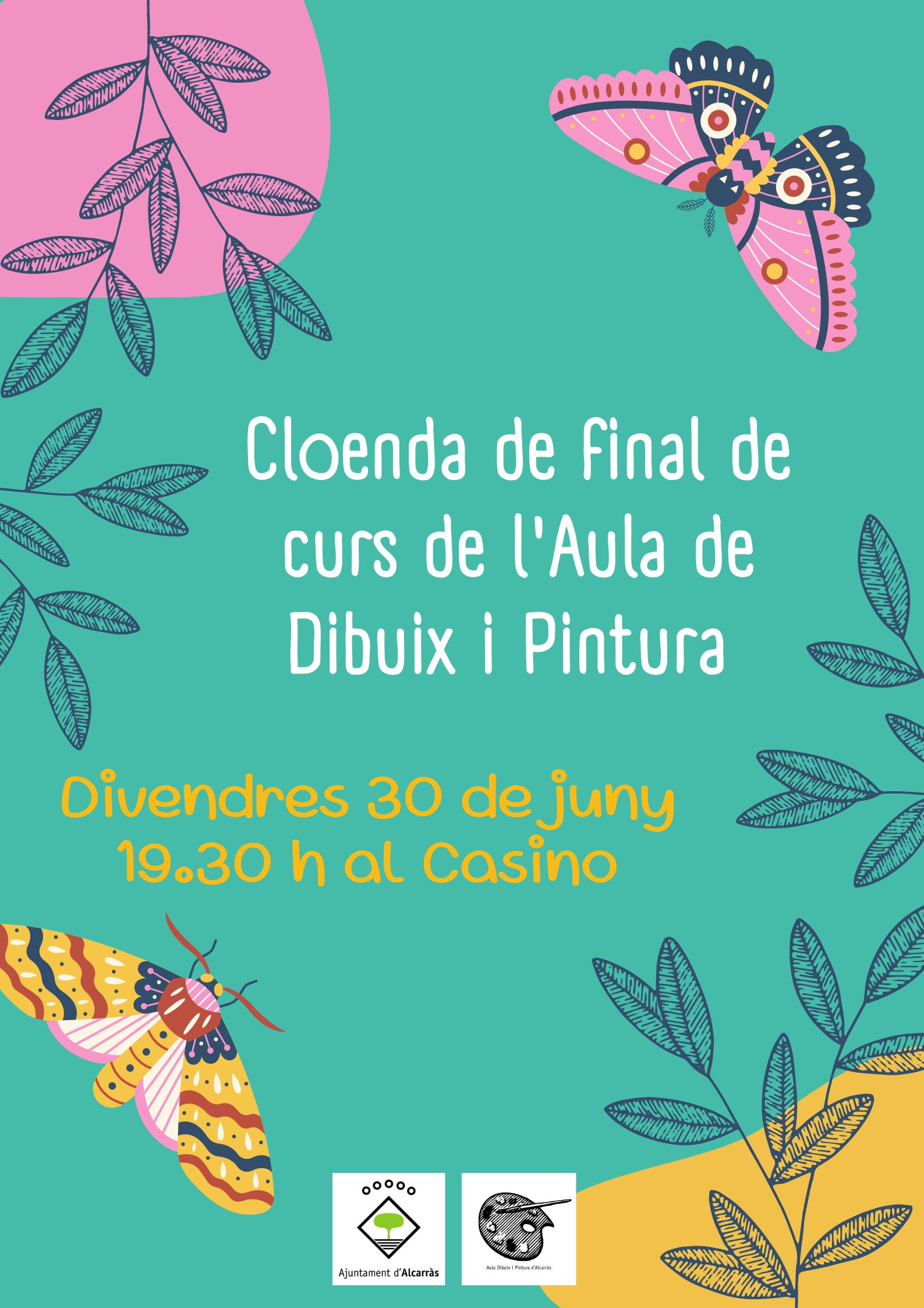 Dijous dia 30 de juny a les 19.30 hores es farà la cloenda del curs 2021-2022 de l'Aula de Dibuix i Pintura, al 2n pis del Casino