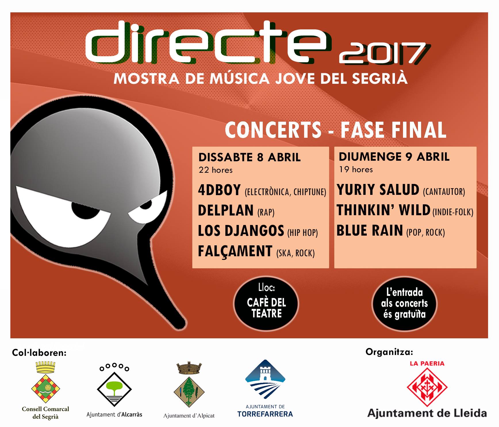 DIRECTE és una iniciativa que té com a objectiu principal promoure i donar suport a les formacions musicals de gent jove de la comarca del Segrià, especialment les de músics novells i emergents.