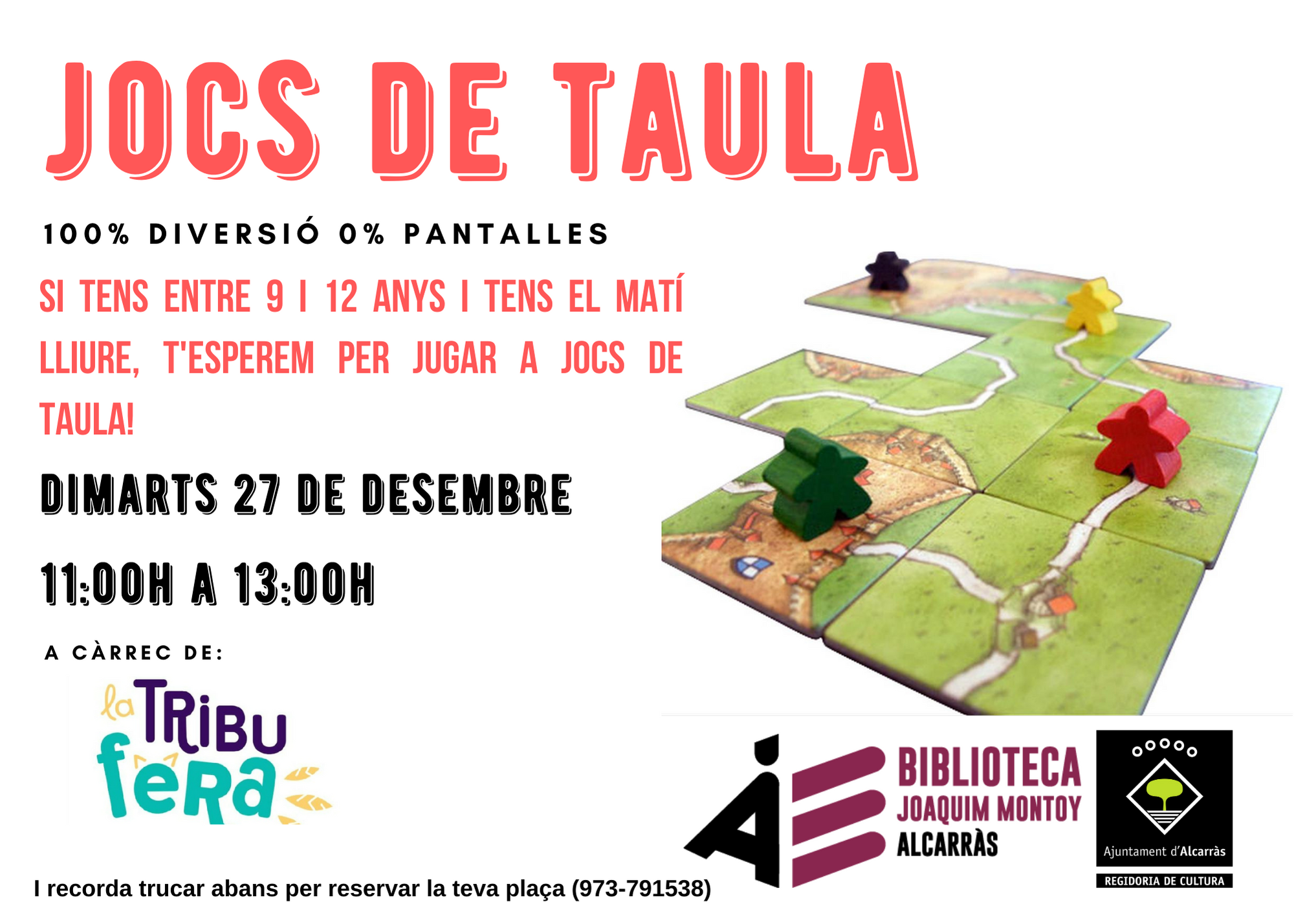el matí de dimarts lliure, t'esperem per jugar a jocs de taula! Però recorda trucar abans i reservar la teva plaça!! (973-791538)