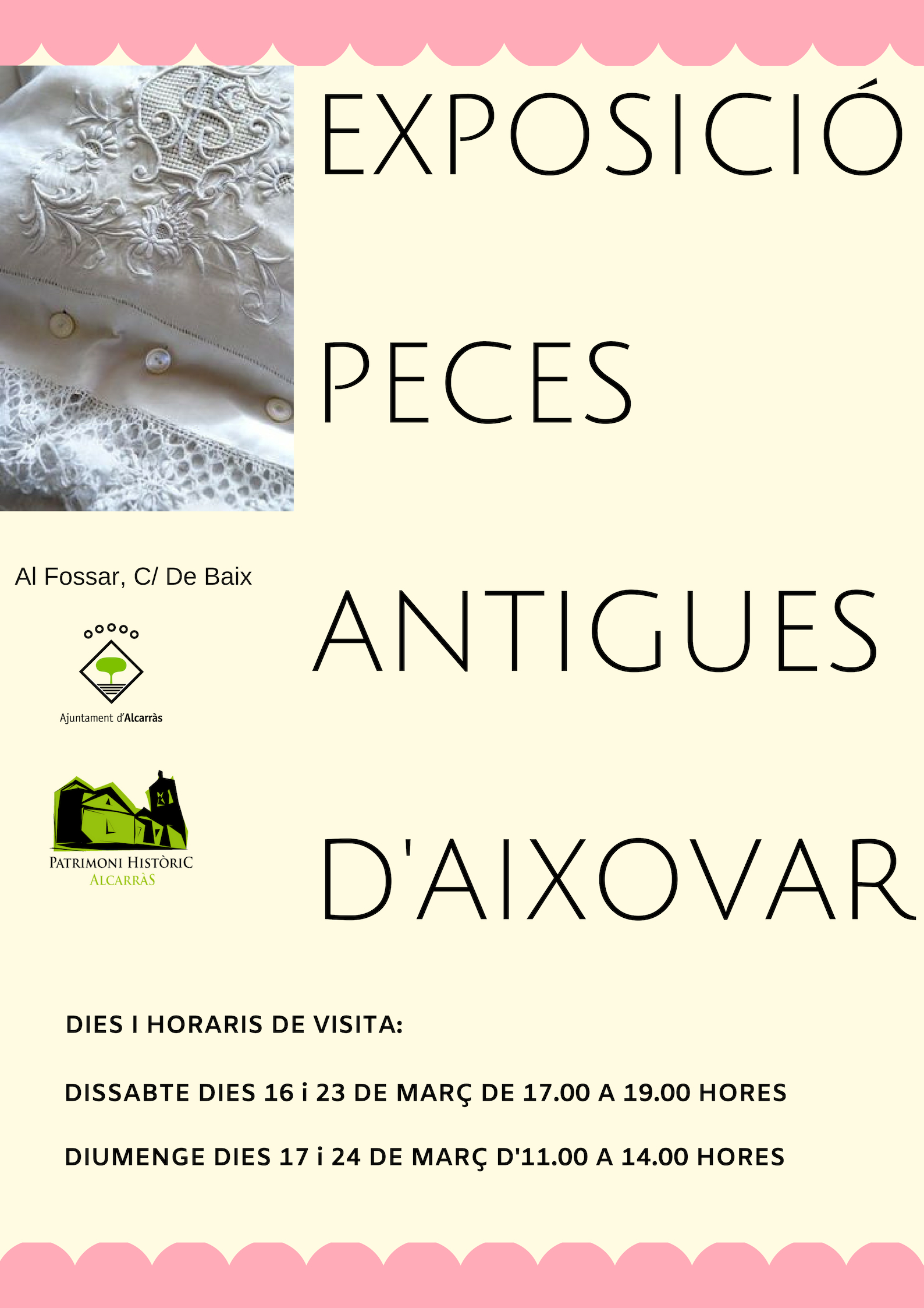 Explicació visita guiada al Fossar i es podrà veure l’exposició de peces antigues d’aixovar.