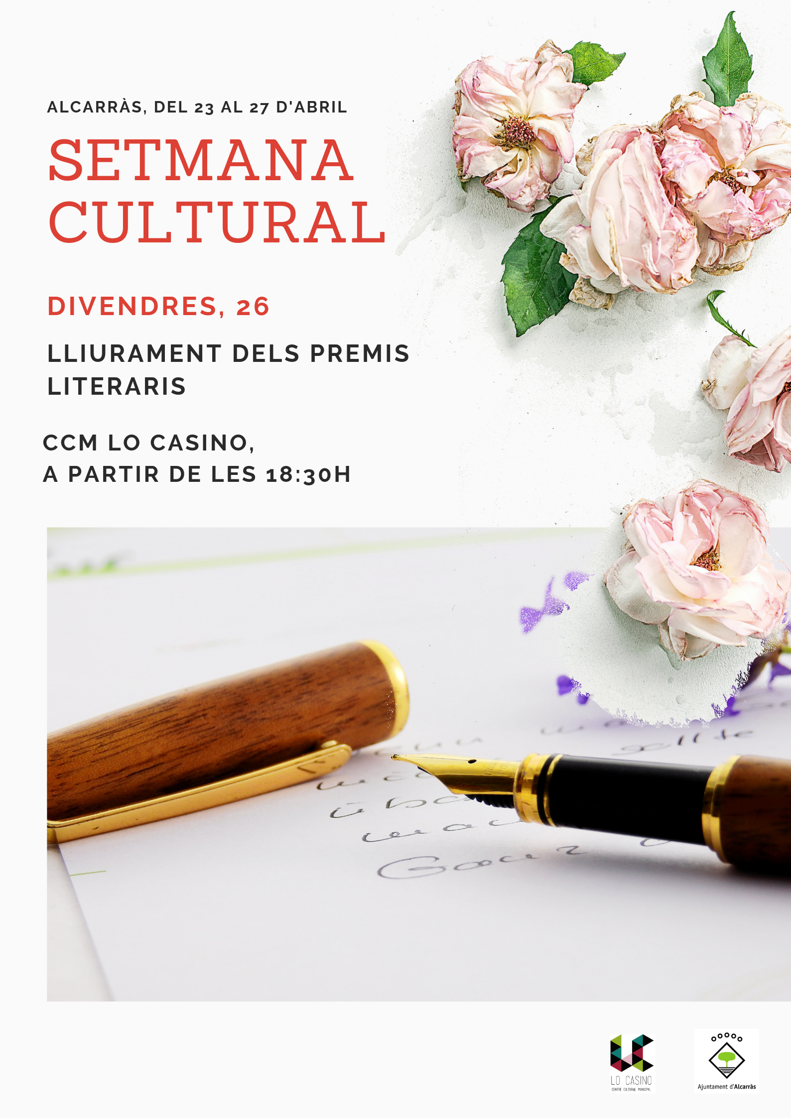 Dins del Pla Educatiu d'Entorn, es llegiran textos i poemes de Joan Brossa, commemorant el centenari del seu naixement. Hi participaran alumnat de l'Escola Comtes de Torregrossa, Parc del Saladar, Escola Carrassumada de Torres de Segre i Institut d'Alcarràs.