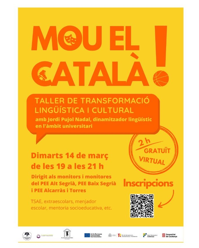 El dimarts 14 de març, de les 19:00 h a les 21:00 h, tindrà lloc el taller "Mou el català", a càrrec de Jordi Pujol Nadal, llicenciat en Filologia catalana i dinamitzador lingüístic en l'àmbit universitari.