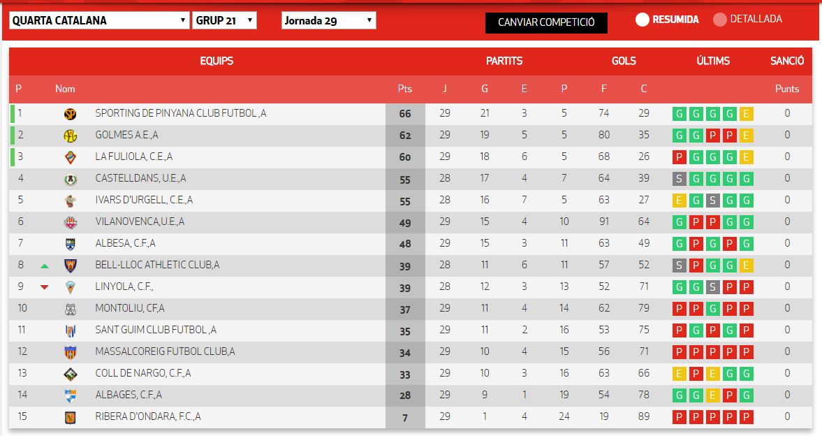 El passat diumenge 6 de maig, el Sporting Pinyana es va proclamar campió de lliga de la Quarta Catalana (Grup 21) al quedar empatat amb La Fuliola. Moltes felicitats!