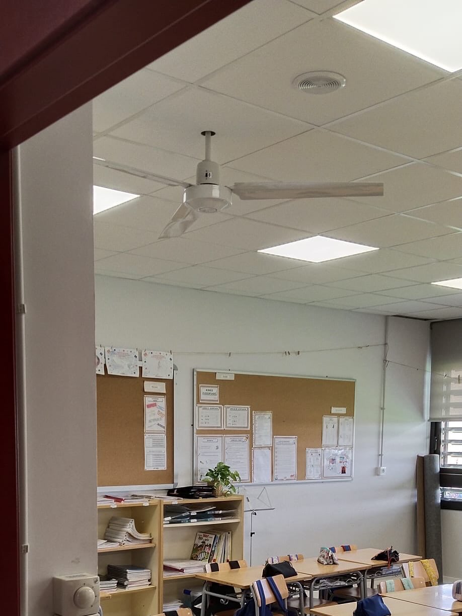 Molt orgulloses de continuar millorant el confort de l’alumnat a l'Escola d'Almenarcamb la instal•lació de quatre ventiladors de sostre a les aules.