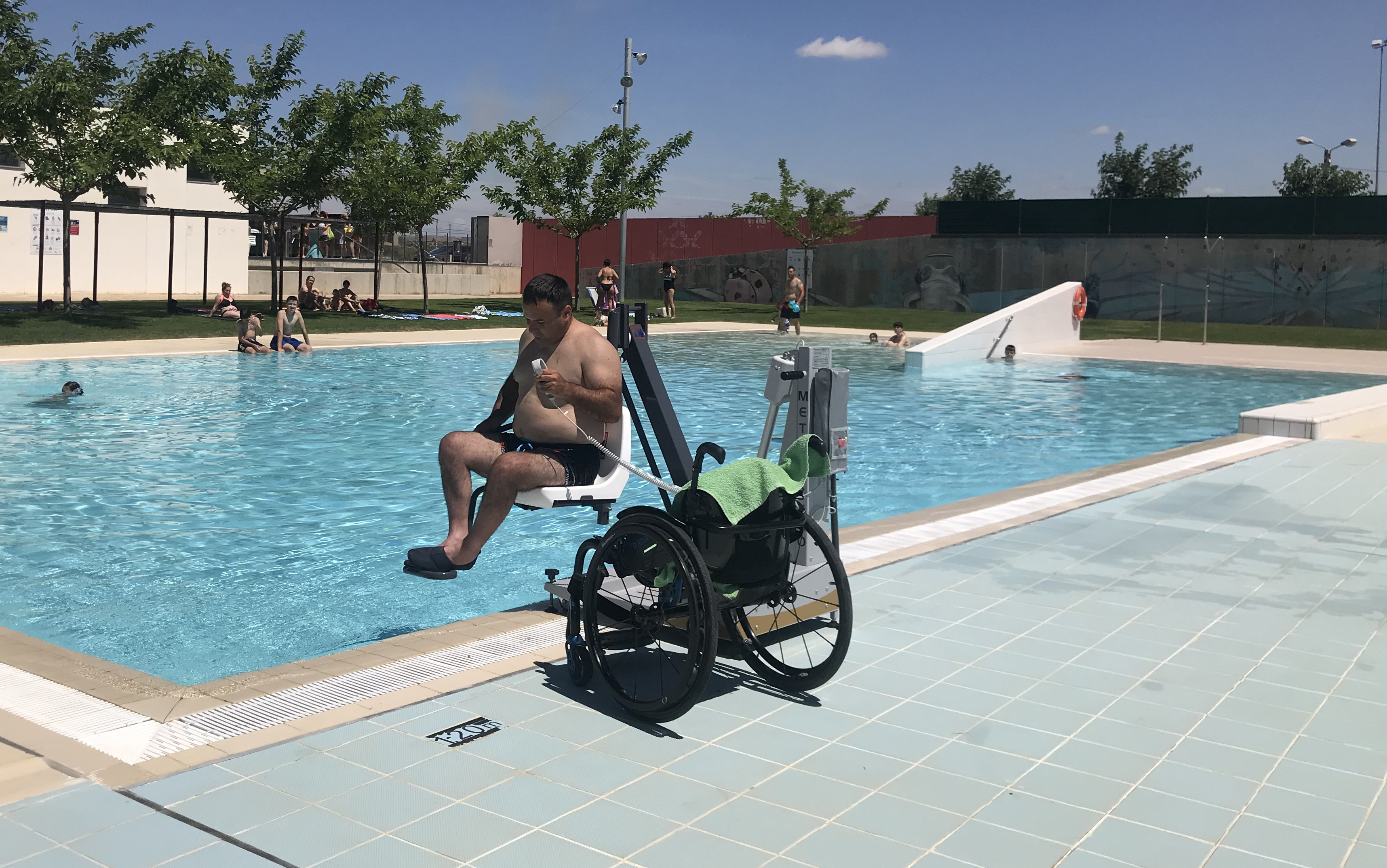 Alcarràs instal·la una cadira adaptada a la piscina municipal per a que persones amb mobilitat reduïda puguin banyar-se