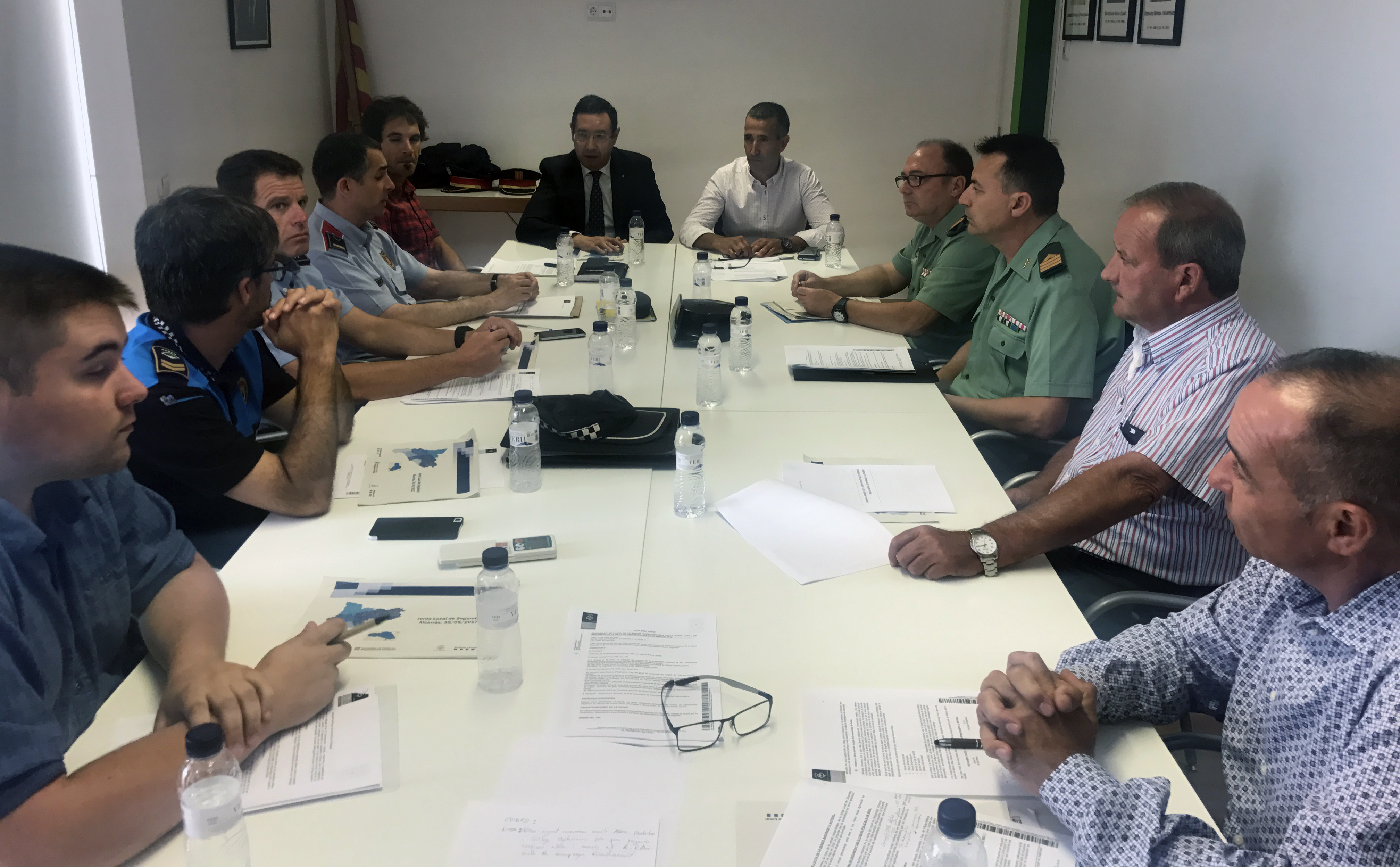A la reunió hi han assistit agents de la Policia local, Mossos d'Esquadra, Guàrdia Civil, així com l'alcalde de la localitat, Miquel Serra, el delegat del Govern a Lleida, Ramón Farré, i regidors d'ERC, PDeCAT i SA de l'Ajuntament d'Alcarràs.