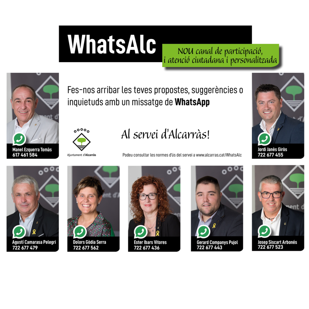“Fins ara, hem disposat d’una eina la qual ha funcionat prou bé i ha donat servei, però també cal recordar que implica una despesa anual de 2.926 euros i el dia a dia ens ha demostrat ara que hi ha altres formes de garantir el contacte directe i àgil entre l’Equip de Govern i les persones. Amb la creació del servei WhatsAlc, endrecem tot plegat d’una nova manera i generem un estalvi. És un avanç, avui tothom en fa ús d’aquestes eines i hem volgut posar al dia el nostre consistori i facilitar la vida de les persones a l’hora de col·laborar i traslladar-nos suggeriments, queixes o inquietuds. Guanyem en agilitat, fomentem la transparència i apropem l’acció institucional a la ciutadania”, assenyala Manel Ezquerra.