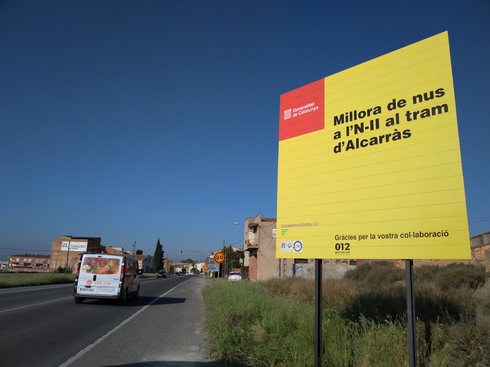 Aquesta setmana han iniciat les obres de construcció de la rotonda de l’N-II a l’entrada d’Alcarràs. El projecte té un termini d’execució de 6 mesos, compta amb un pressupost de 910.000 euros, i contempla el canvi en la morfologia de la intersecció de l’entrada del municipi per millorar-ne la seguretat viària. En concret, afecta les carreteres N-II i L-800, coneguda com a avinguda de Vallmanya i que permet accedir a l’A-2, i els carrers urbans Major i indústria.