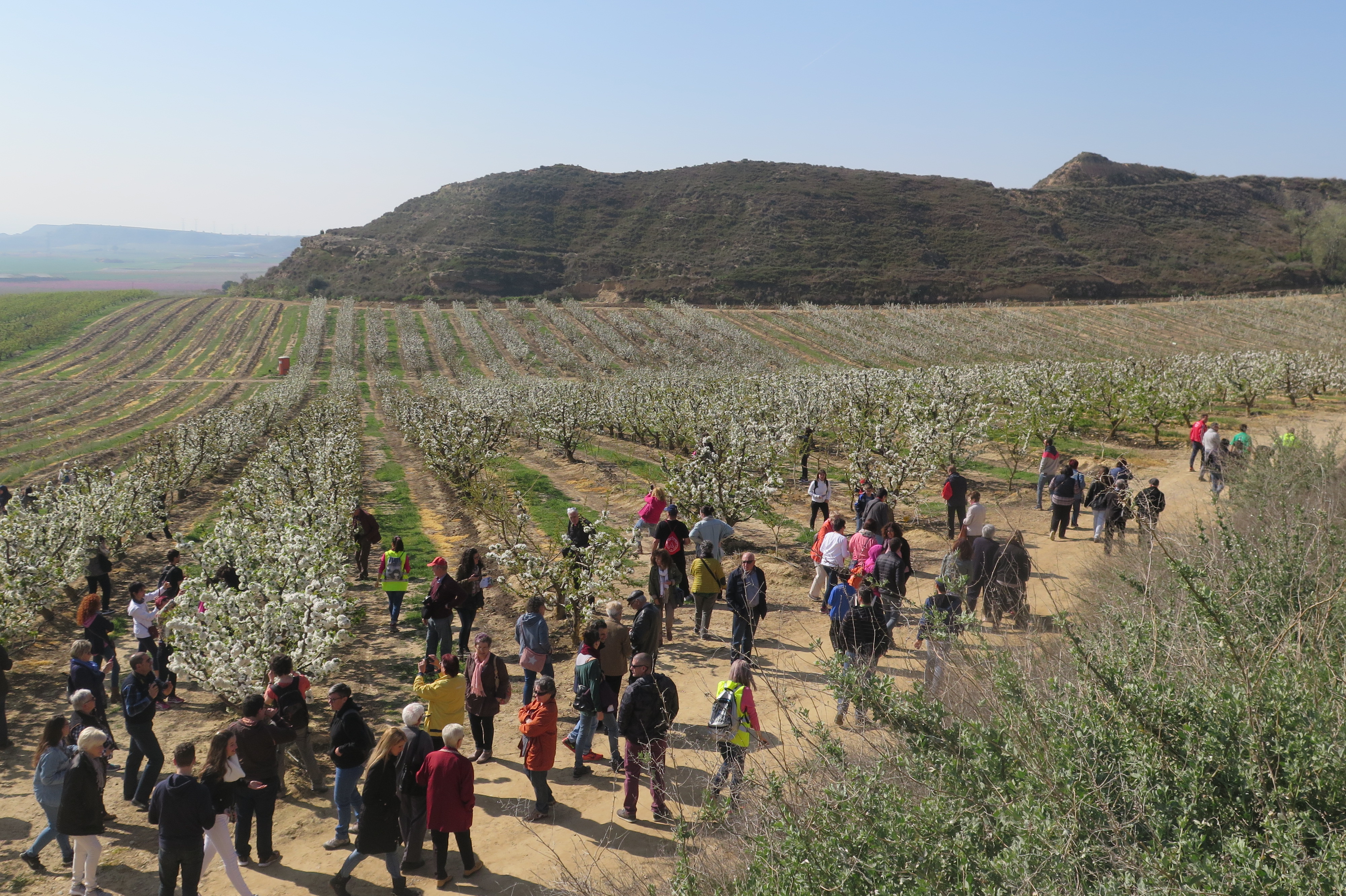 Dos autocars amb persones vingudes d’arreu han pogut gaudir aquest dissabte de la IV edició de l’Alcarràs Florit, una ruta per als paisatges dels arbres fruiters florits, amb un esmorzar enmig d’una de les finques que s’han visitat. La ruta ha començat amb la visita d’un paisatge d’arbres cirerers, la flor dels quals, avui de color blanc, oferia una combinació de colors entre blanc, rosa i verd. Un tècnic de Fruits Caberol –empresa de fruita amb seu a Alcarràs- ha explicat als visitants les fases de la flor fins que arriba a fruit.