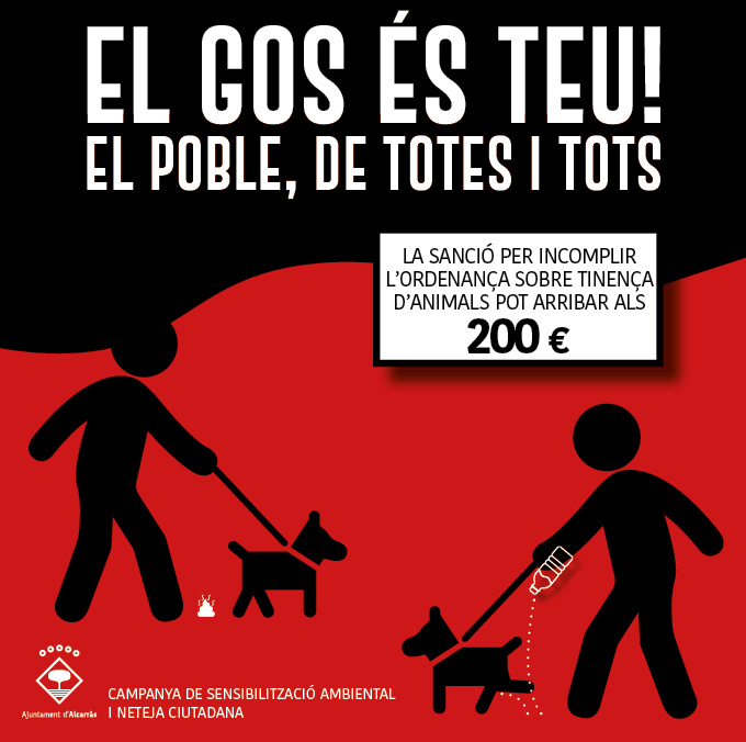 Amb el canvi, les persones propietàries de mascotes, hauran de sortir a passejar-les portant un petit recipient –ampolla o similar- d’aigua que s’haurà de llençar a sobre de les miccions de l’animal per tal de neutralitzar olors i que no es faci malbé cap element del mobiliari urbà. En relació amb les deposicions, el procediment serà l’habitual, i bastarà amb recollir-les amb una bossa i dipositar-les en els contenidors de resta. “Alcarràs és de totes les alcarrassines i els alcarrassins, independentment de si tenen o no mascotes i cal cuidar entre totes i tots l’espai públic i mantenir-lo net. Demanen ara un petit esforç afegit a les persones qui comparteixen els seus dies amb mascotes”, explica Janés. La Policia Local començarà a imposar les sancions aquesta primavera i l’Ajuntament activa una campanya informativa a xarxes aquest mateix 20 d’abril.